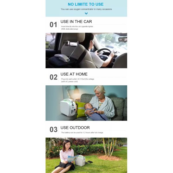 Our portable oxygen concentrator whose oxygen output is1-5L/min is small and light, with rechargeable battery, this machine can be used when people travel. This is a cost-effective product appropriate for blue-and-white collar workers and the common masses.